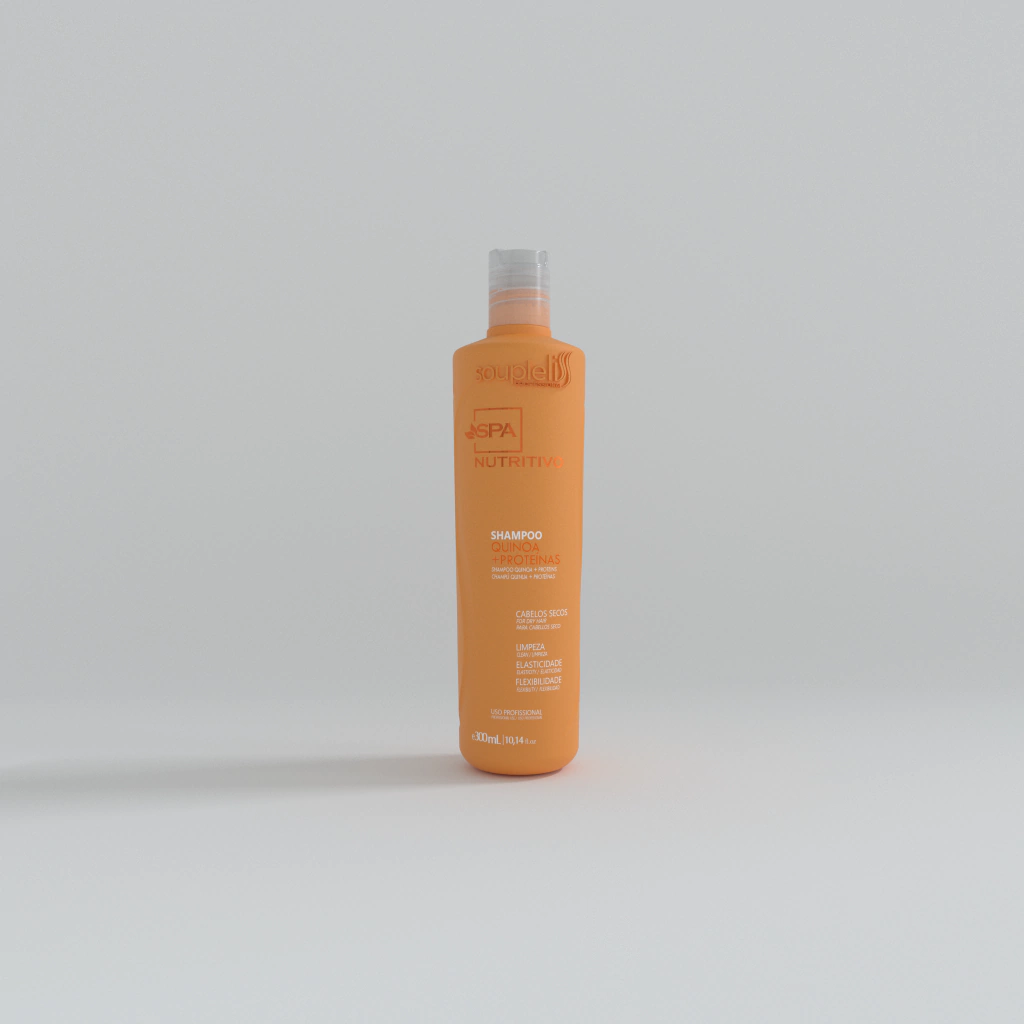 A linha SPA Cabelos Secos Soupleliss Professional foi desenvolvida com matérias primas para atuar nos fios contra o ressecamento. Devolve brilho, hitratação e maciez aos fios além de recuperar a elasticidade, resistência e devolve flexibilidade natural da fibra, também reduz o frizz e mantém os fios sedosos e suaves por muito mais tempo. O Shampoo SPA Nutritivo Cabelos Secos Soupleliss Professional, foi desenvolvido com matérias primas para atuar nos fios contra o ressecamento. Limpa equilibradamente os fios sem ressecar, deixando os fios muito mais sedosos e suaves.